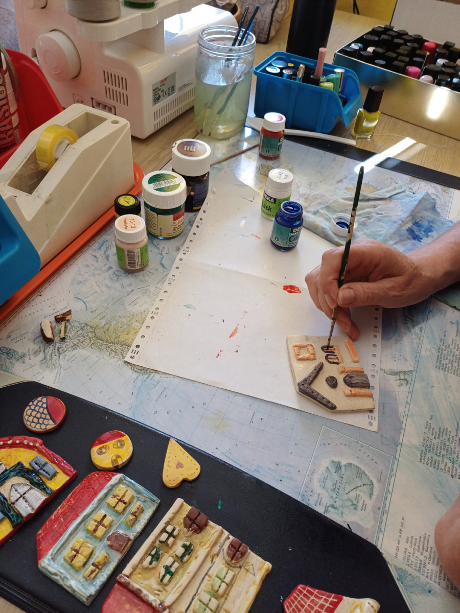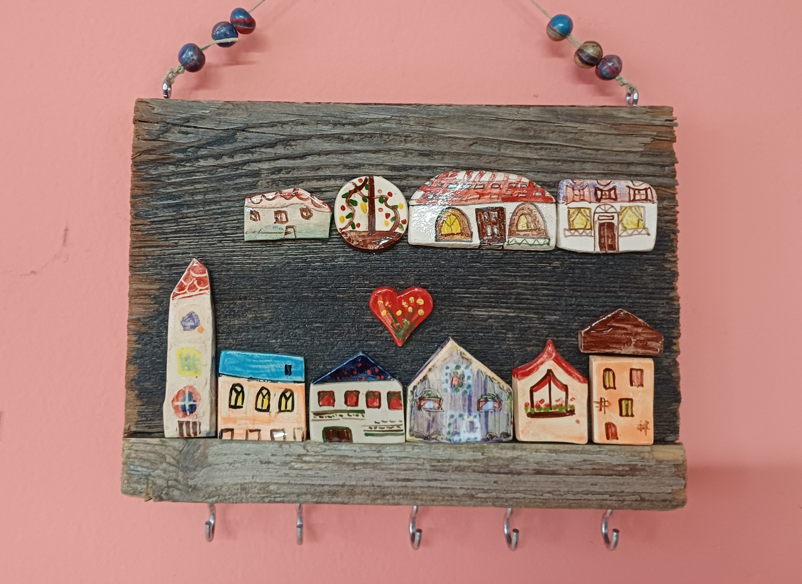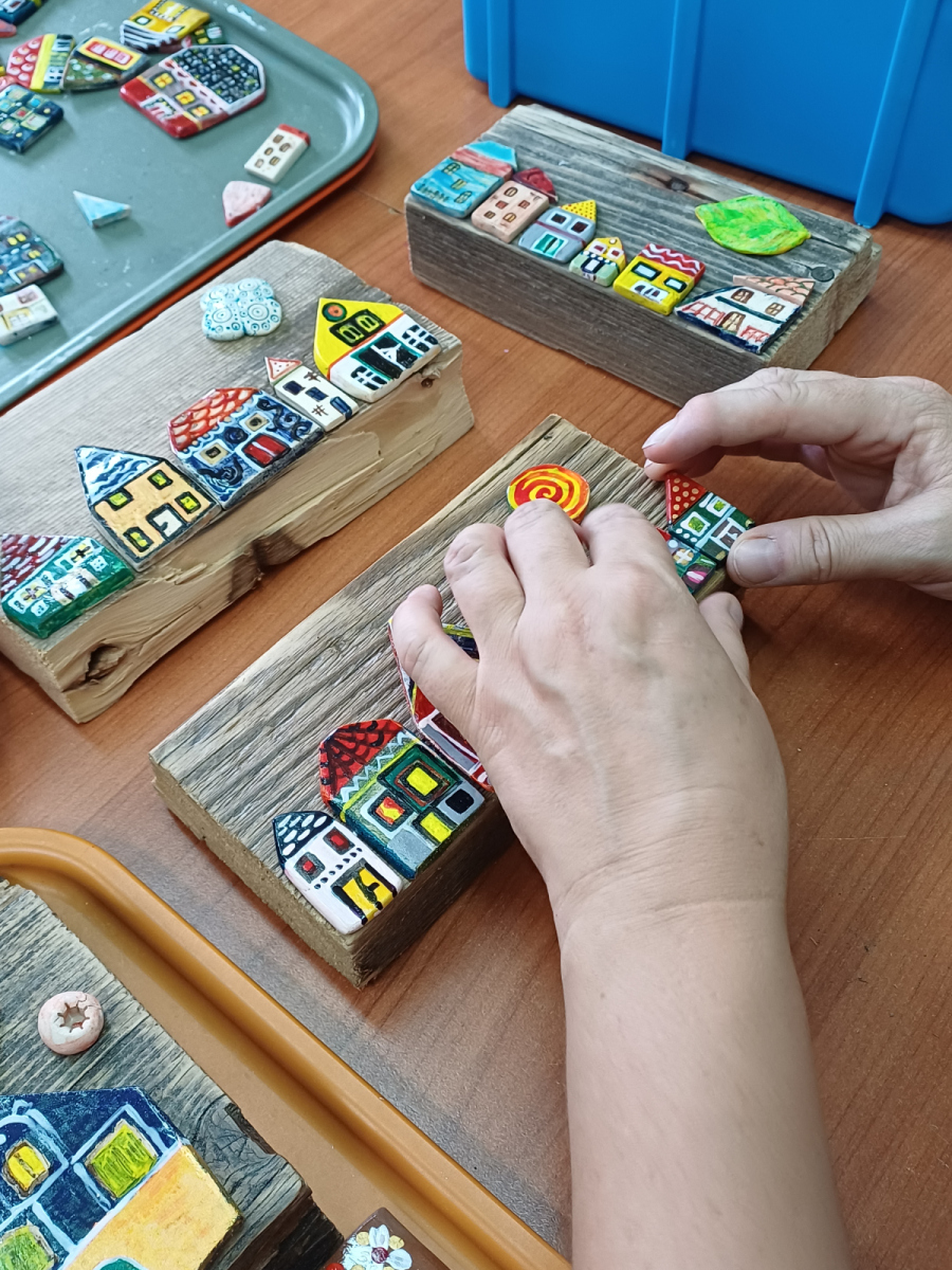 Za izdelek smo sami nabirali odpadni les po zatokih, ga nato prekuhali zato, da se znebimo morebitnih žuželk, sledilo je brušenje in lakiranje z mat lakom za zaščito, nato smo nekatere tudi prebarvali. Sledila je izdelava hišk iz gline, pečenje v peči za glino, barvanje, glaziranje, postavitev na les in lepljenje. Nekatere hiške so le dekorativne, druge pa smo opremili še s kaveljčki za ključe tako, da so dobile tudi uporabno vrednost. Izdelek je nastal ob raziskovanju naše kulturne in arhitekturne dediščine, od kjer smo vzeli tudi istrski izraz “Mikine šiše” za majhne hiše ( povzetek iz knjige Gisele Šuklje: Vpliv podnebnih razmer na oblikovanje hiš in naselij v Slovenski Istri ).