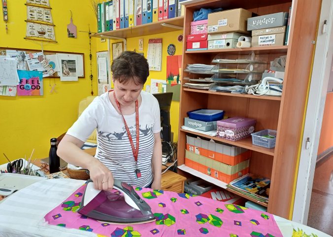 V naši enoti smo se zaradi večje količine podarjenega blaga lotili tudi nekoliko zahtevnejšega izdelka. Nastal je brezrokavnik Top, ki je bil ukrojen po meri uporabnice.